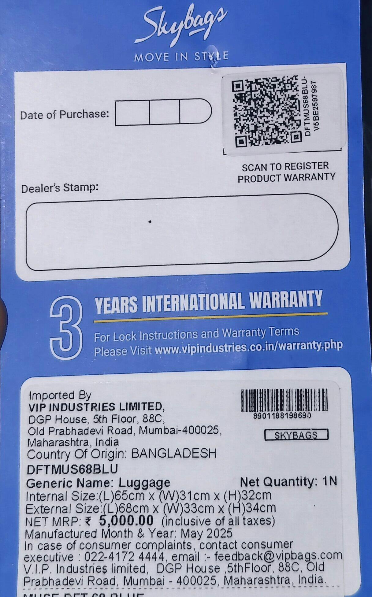 1. We're here for you: Report any damaged shipment within 24 hours via email: talk2me@skybags.co.in, and we'll swiftly assist you.