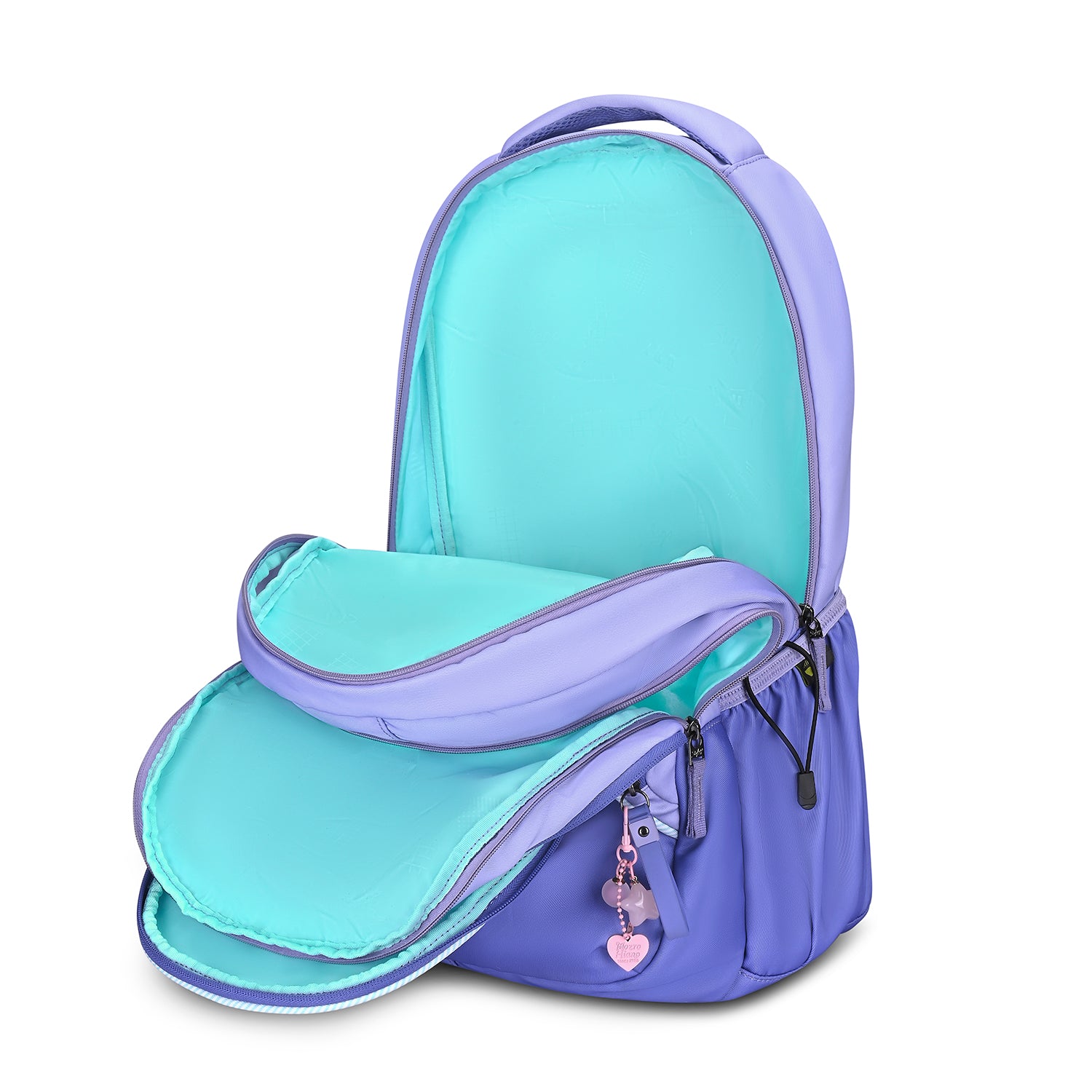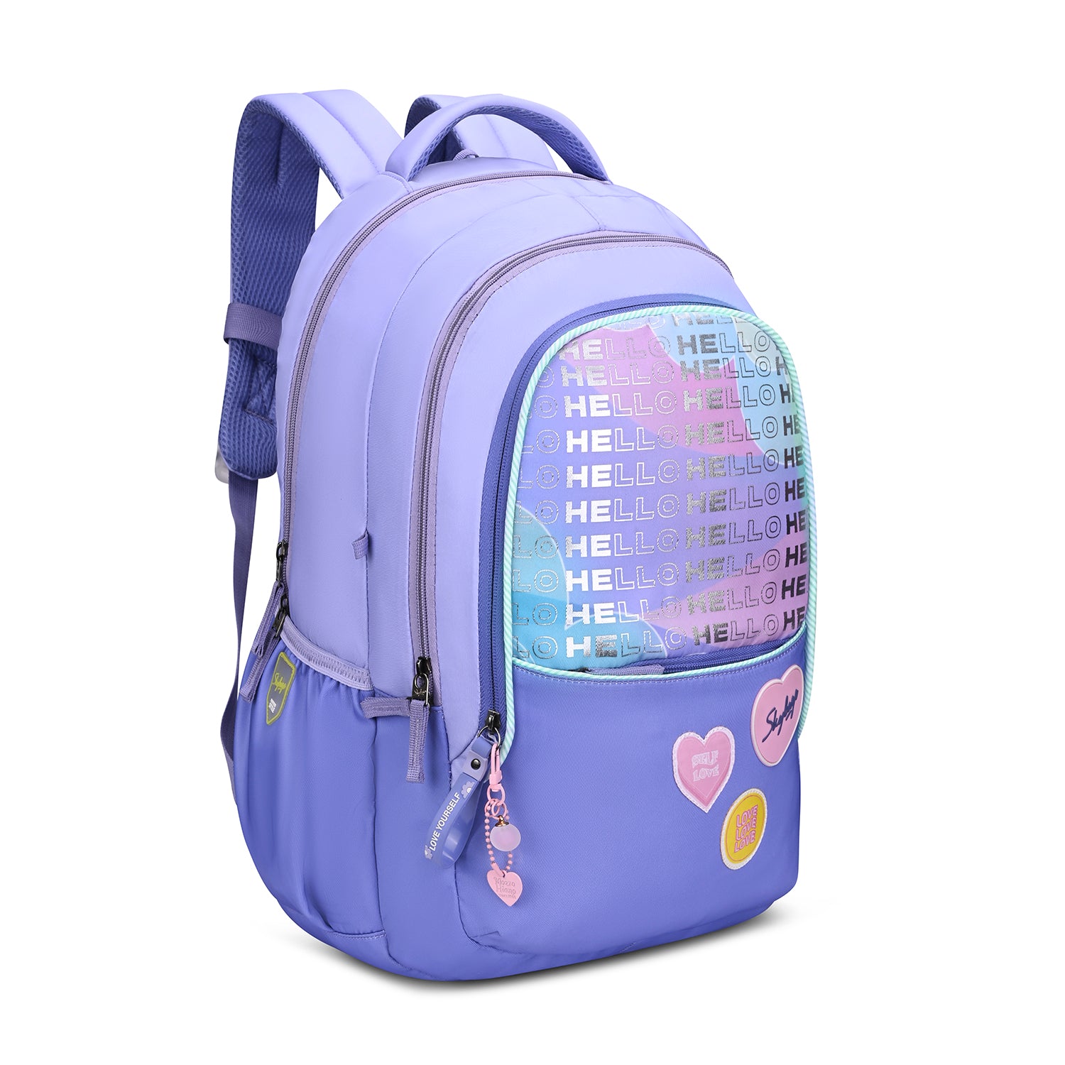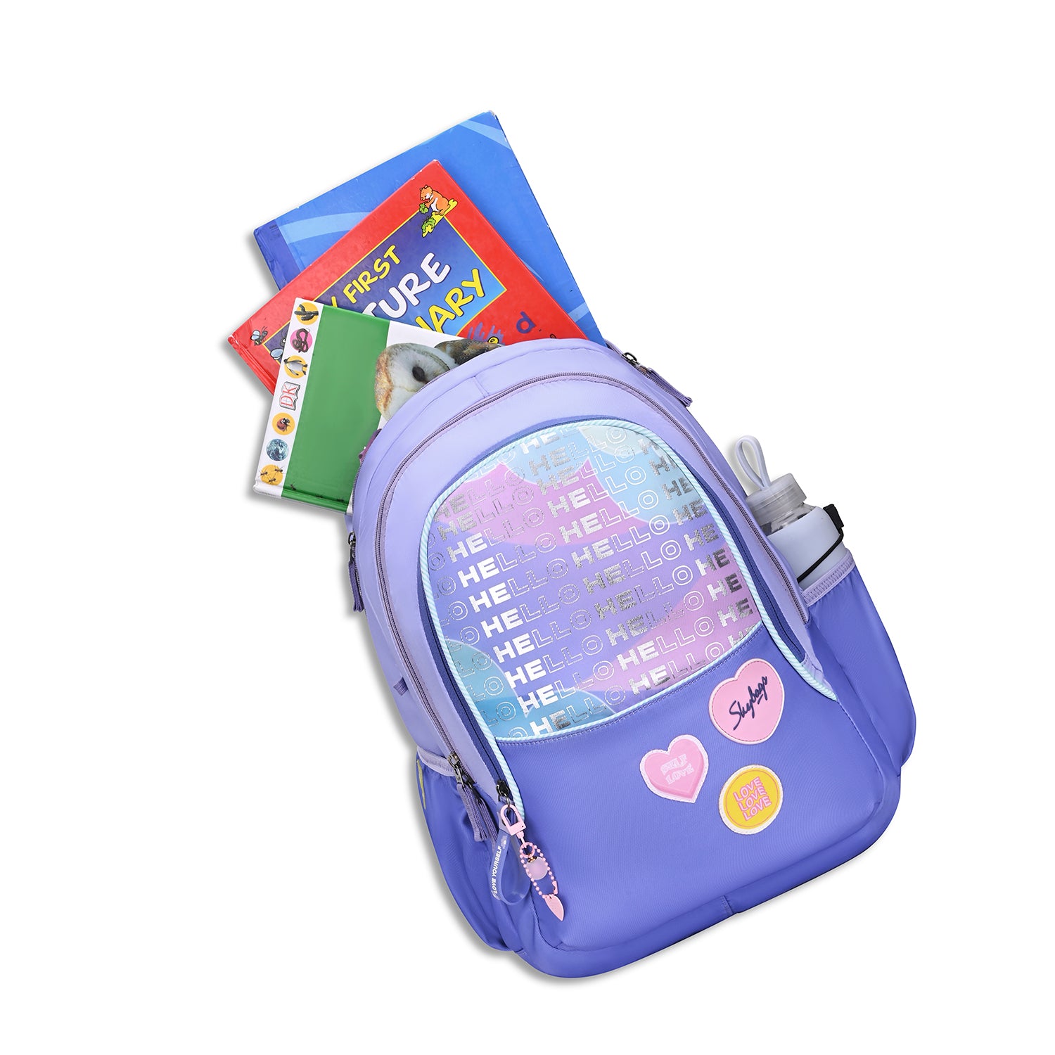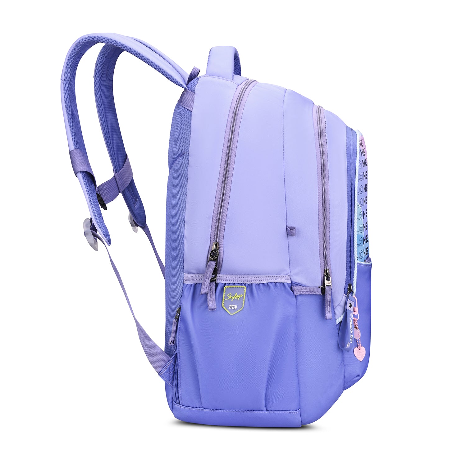 Skybags Glitter stands out with its silver, bling-inspired fabric that delivers a bold, shiny look, paired with embroidered sticker details for added personality. Designed for everyday use, it features spacious compartments, a quick-access front pocket, a secret pocket and a file sleeve with an organiser and key holder for effortless organisation. A chest strap ensures the backpack stays secure and comfortable throughout the day.