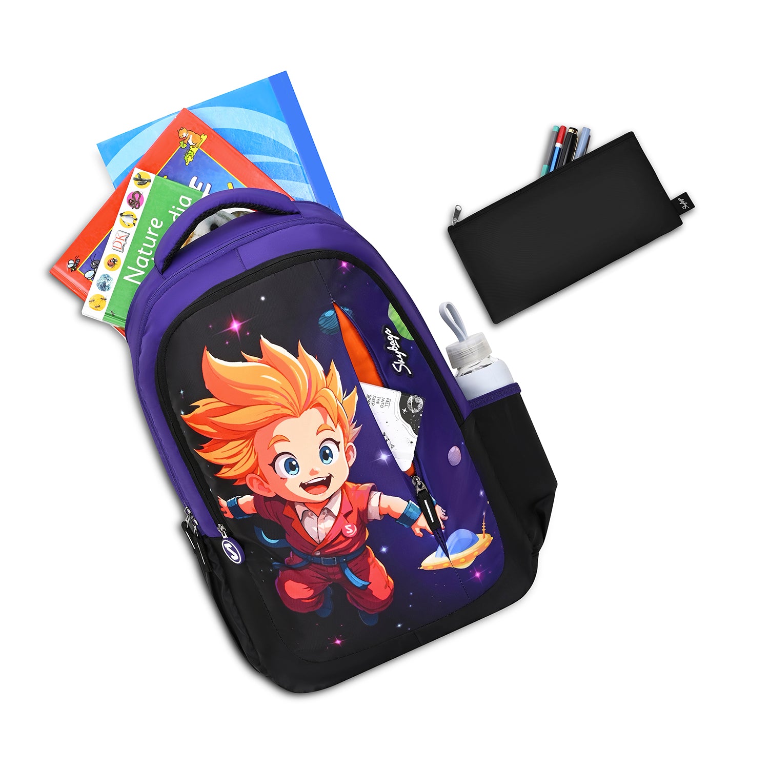 Anime-inspired design meets everyday functionality with 3 spacious compartments and a front quick access pocket, a pencil pouch to store your stationery, an air-mesh back panel for breathable comfort, and built-to-last straps with a chest strap for rugged days. Skybags Manga, made to go the distance.