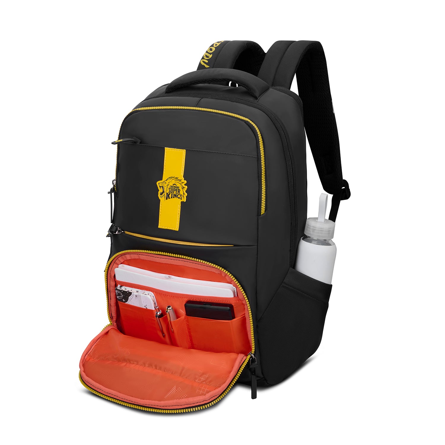 Designed for ambitious young professionals, Skybags Thala is a 24L backpack that combines performance and style. Its dedicated 16.5” laptop and tablet compartment sleeve ensures your tech stays protected, flush USB Type A & C ports for seamless connectivity, a premium padded back panel and trolley sleeve for effortless business travel. The bag is coated with a sleek PU-finish and styled in iconic Chennai Super Kings colours and logo, so you can carry your pride with confidence.